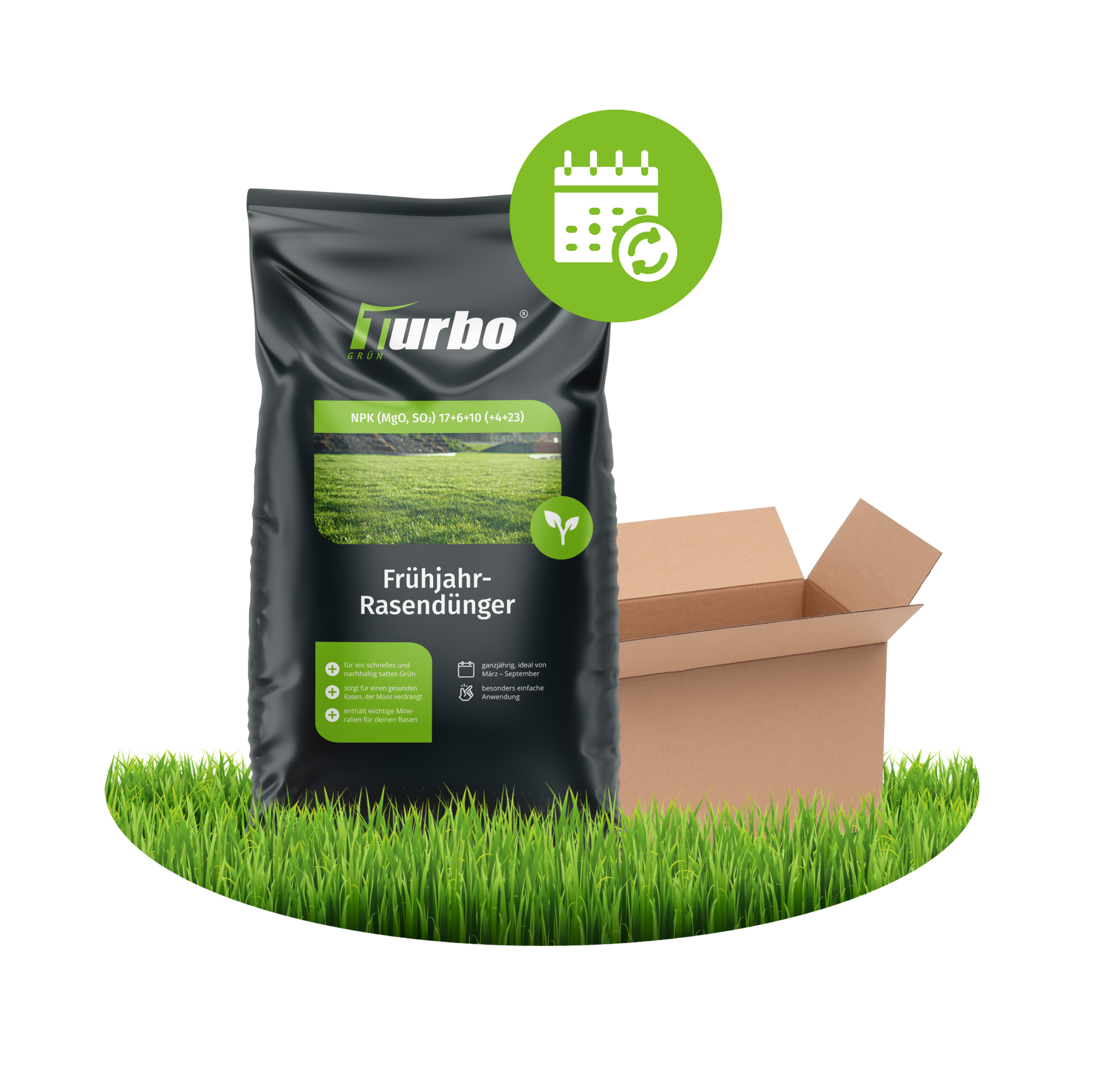 Je nach Temperatur und Witterung benötigt dein Rasen unterschiedliche Nährstoffkombinationen. Mit unserem Klassik Dünger-Abo versorgen wir deinen Rasen mit den richtigen Nährstoffen für jede Jahreszeit.
