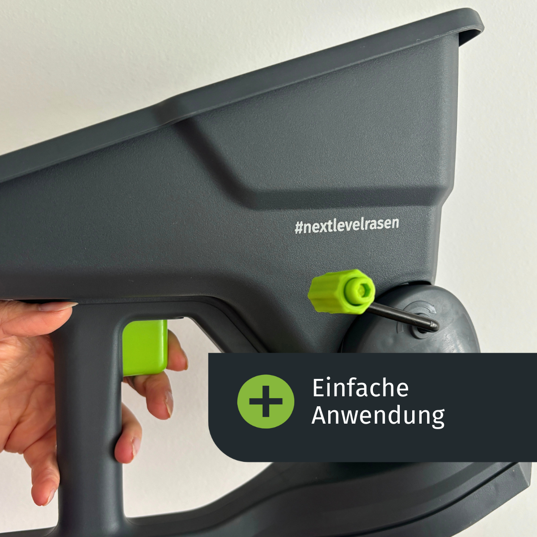 Stundenlang durch den Garten laufen, um die Samen für deinen neuen Rasen von Hand zu verteilen? Oder um deine Grünfläche mit Dünger zu versorgen? Nicht nötig! Mit unserem Handstreuer für Rasendünger und -samen arbeitest du schnell und effizient und das Produkt wird optimal und gleichmäßig über die Fläche verteilt.