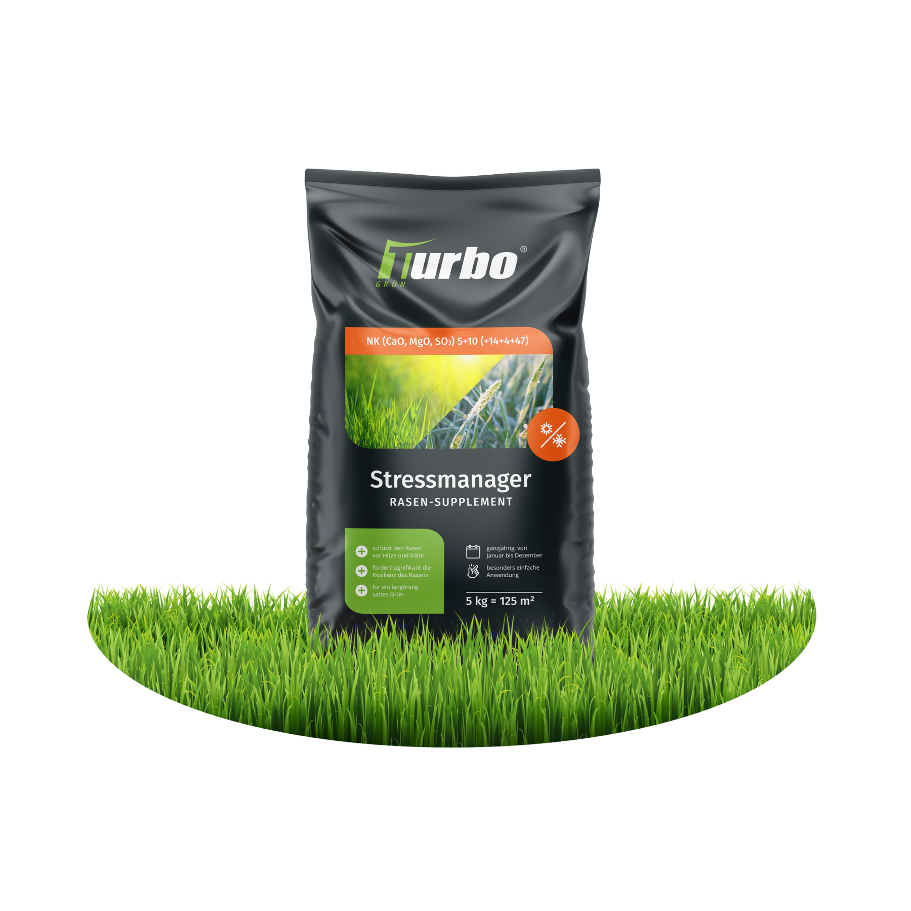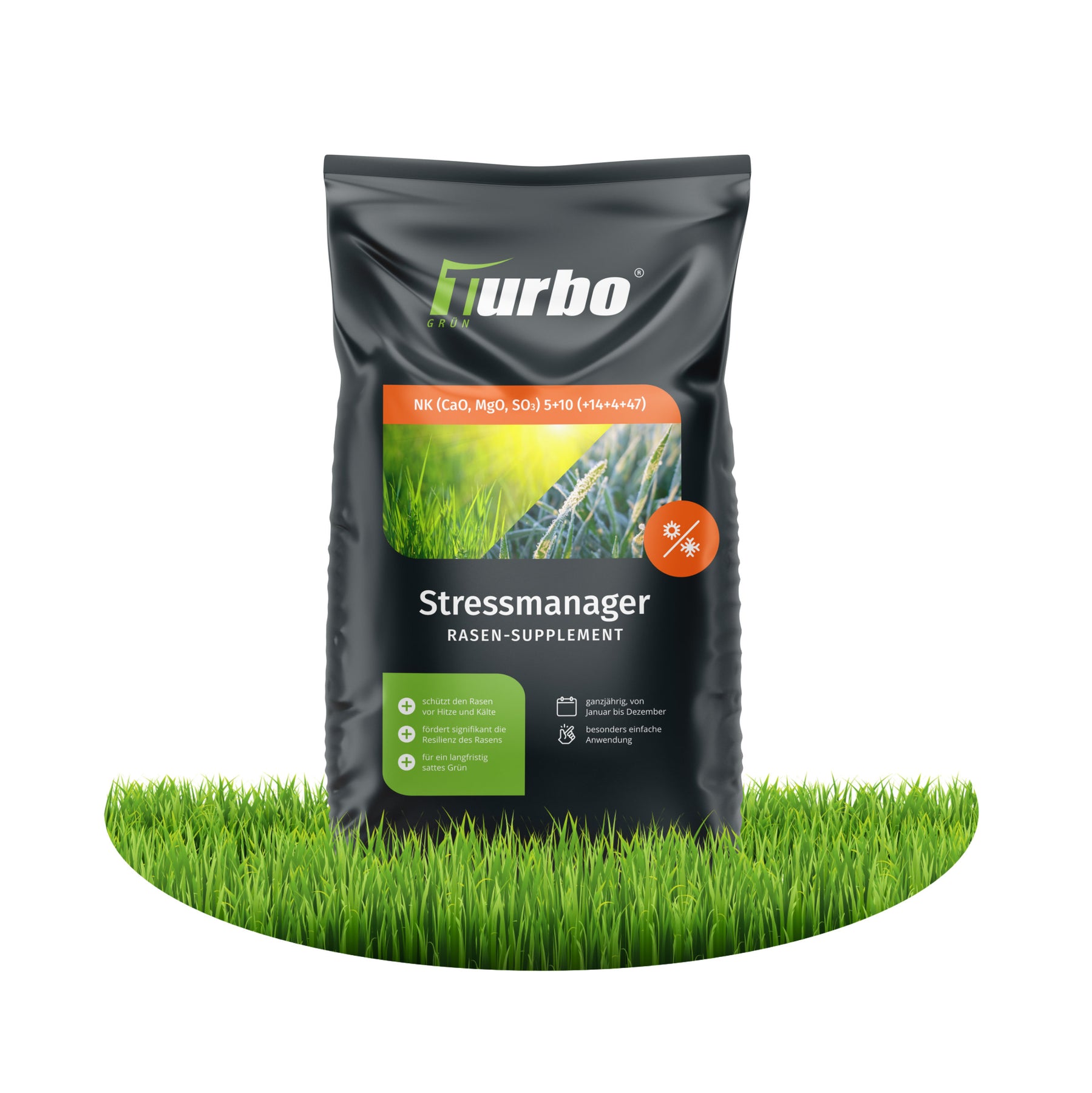 Unser Turbogrün-Stressmanager versorgt deinen Rasen mit Kalium